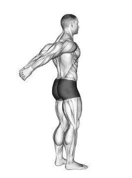 Chest stretch: Stand with your feet shoulder-width apart and your hands clasped behind your back. Gently pull your shoulders back and down, expanding your chest. Hold the stretch for 10-15 seconds.